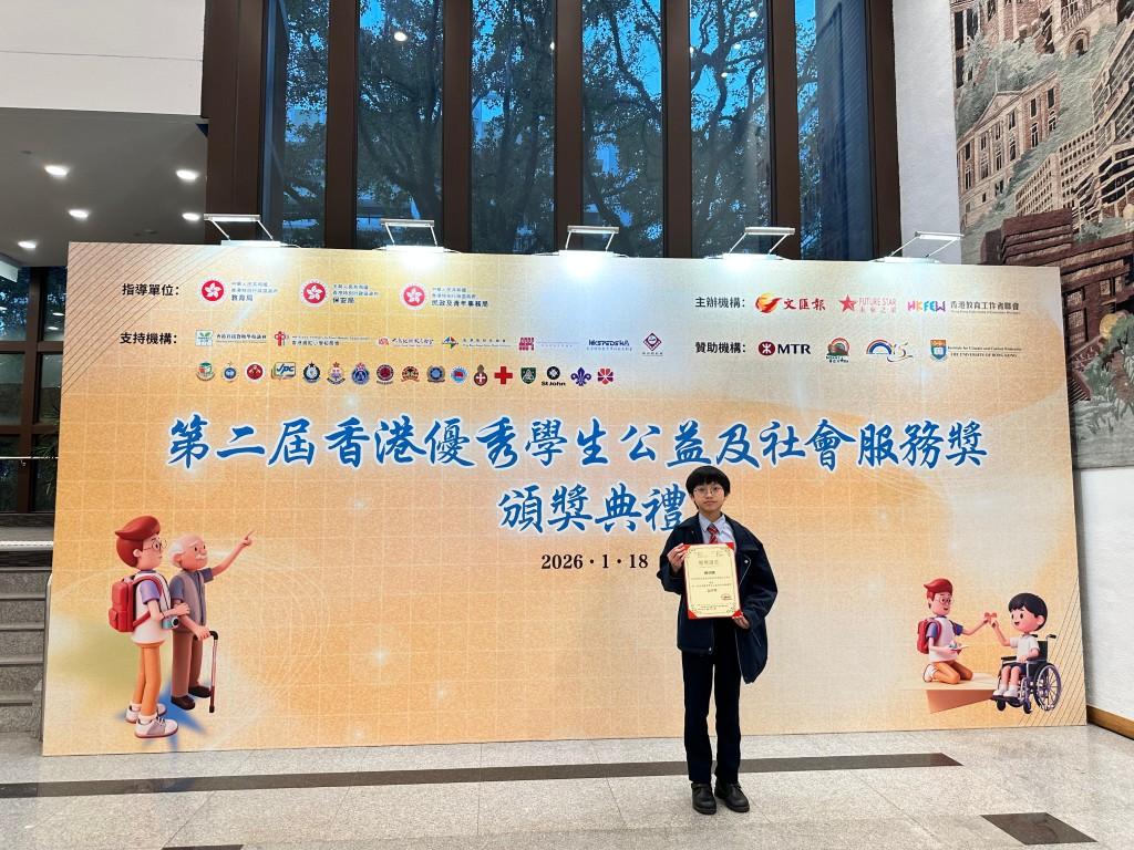 第二屆「香港優秀學生公益及社會服務獎」6D邱卓朗