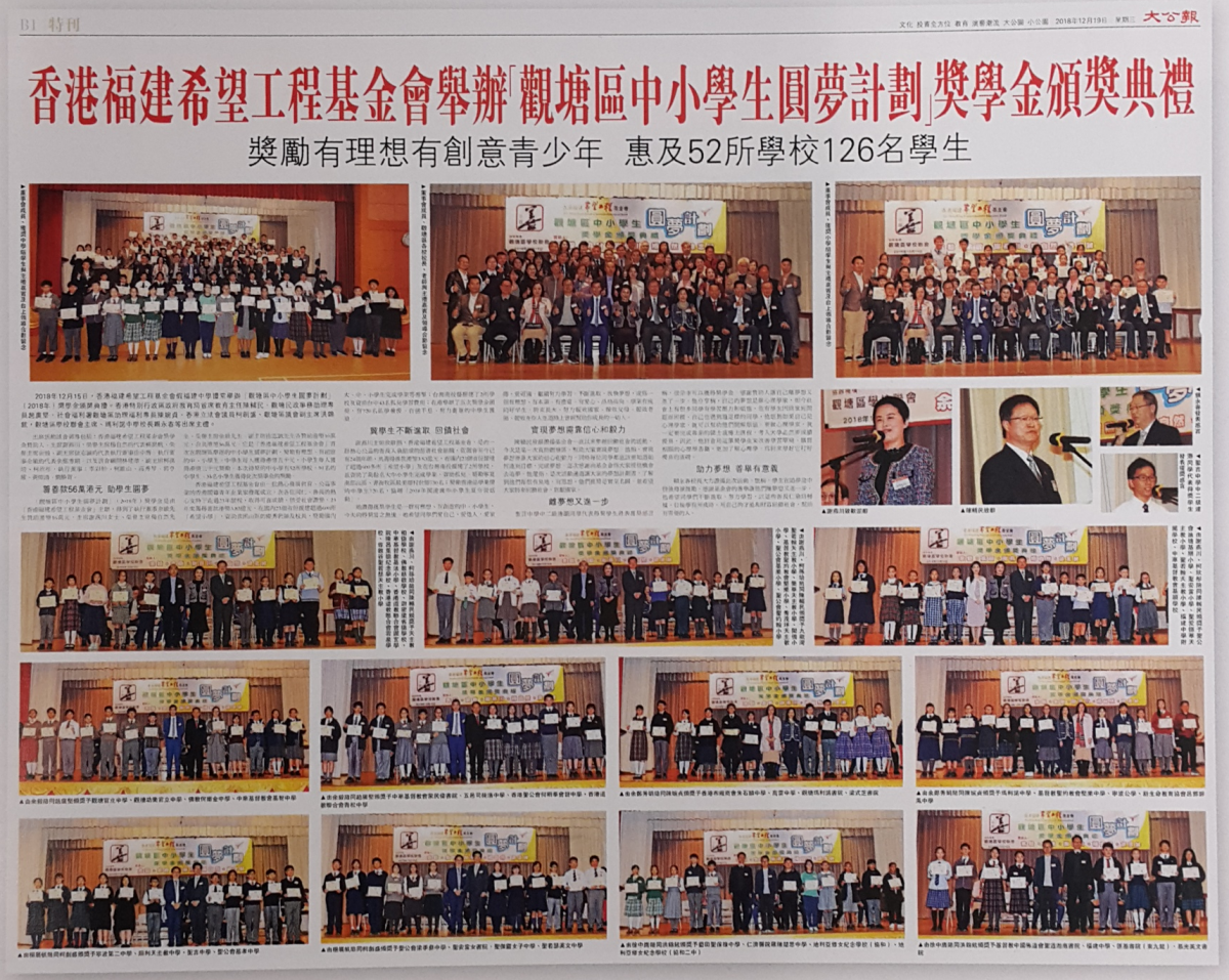2018「觀塘區中小學生圓夢計劃」獎學金頒獎典禮