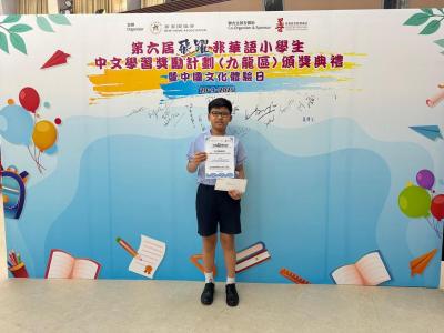 丘梓進同學榮獲第六屆飛躍非華語小學生中文學習獎勵計劃中「中文飛躍進步獎」