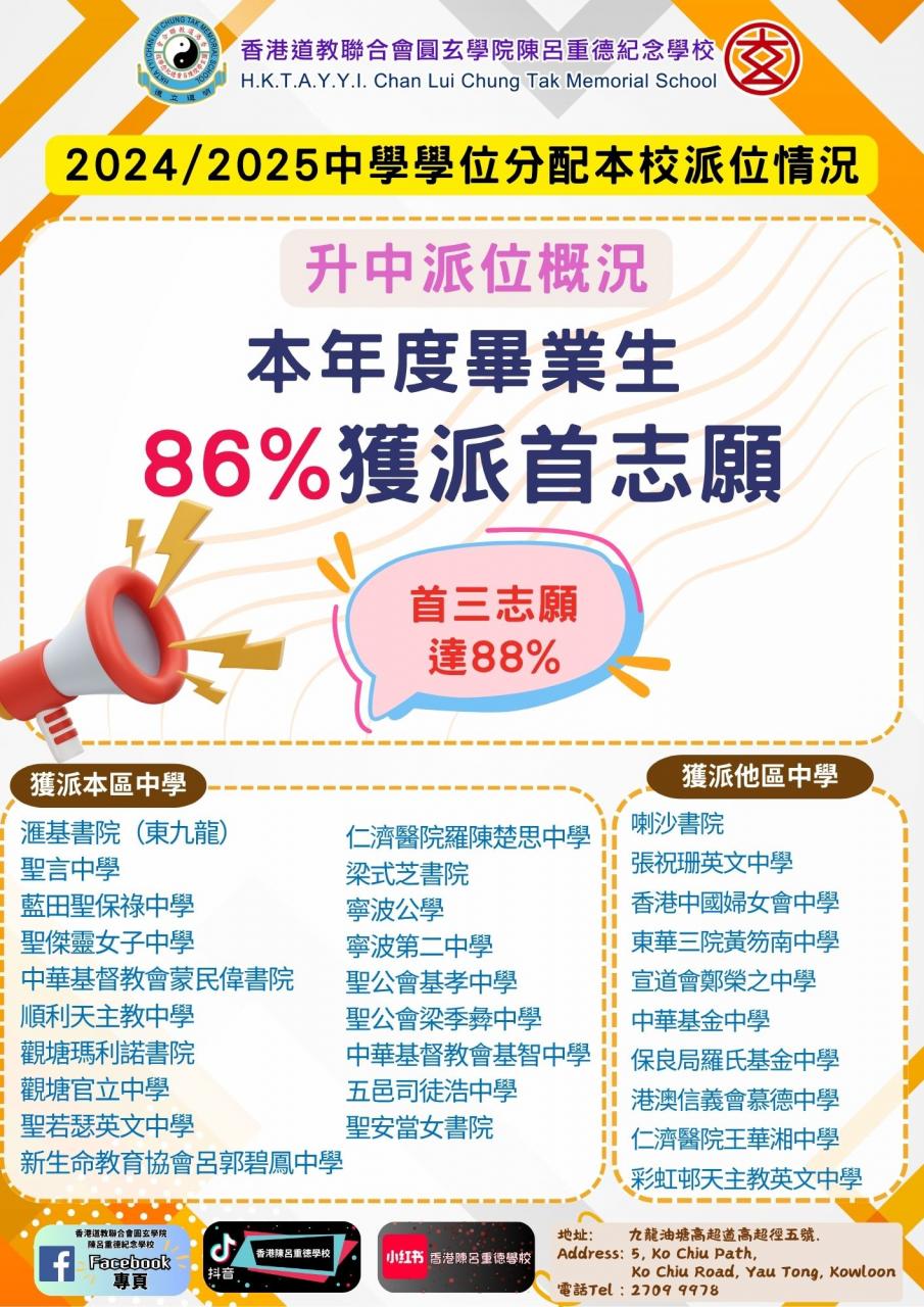 1.升中派位日傳染病如有更改,一切以教育局公佈為準。