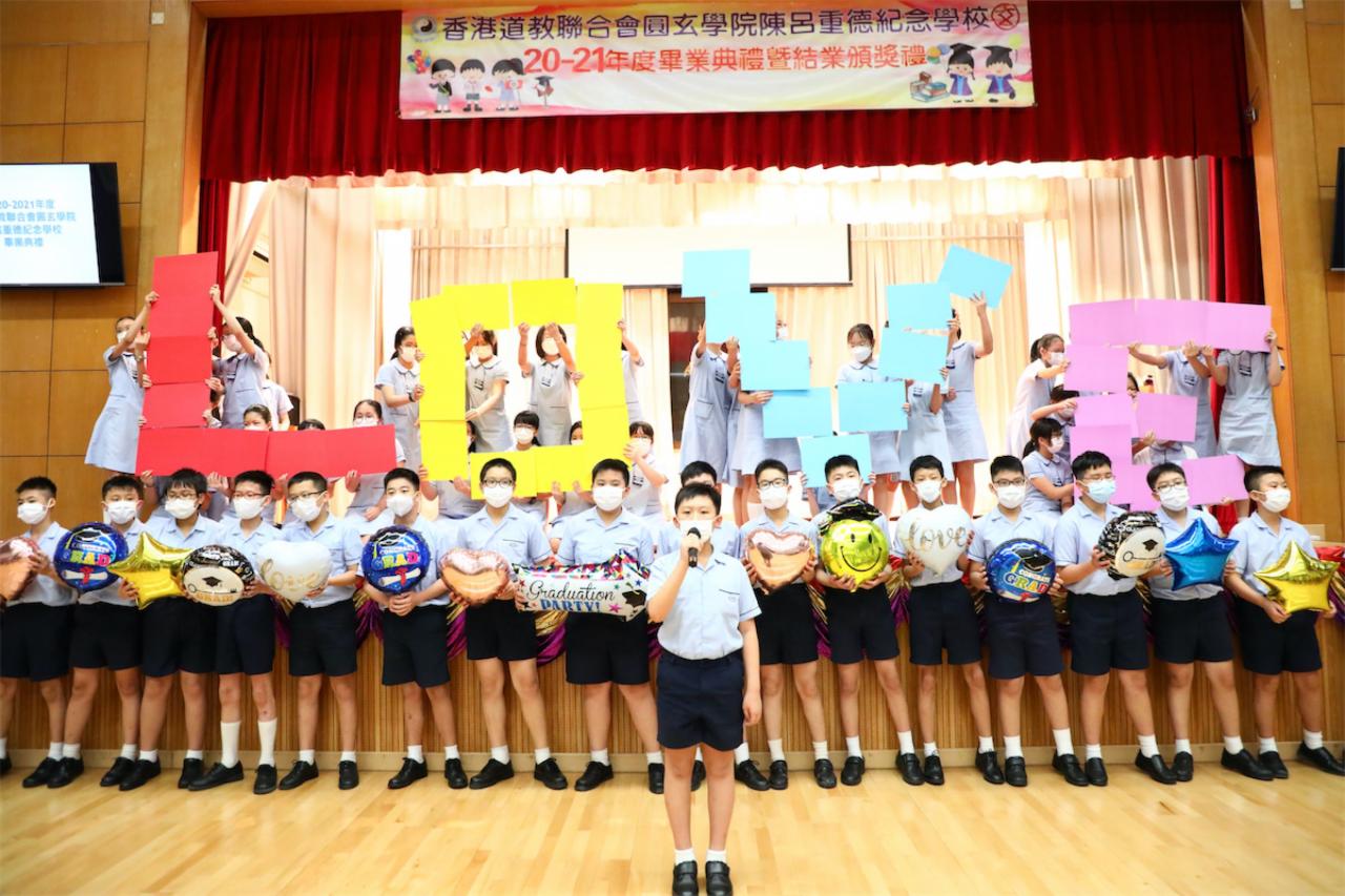 二零二一年七月五日本校舉行第二十屆畢業典禮,承蒙香聖言中學黃志強校長、聖公會李兆強小學陳小燕校長、福建中學附屬學校徐區㦤華校長、爆炸戲棚創辦人及藝術總監陳恩碩先生擔任主禮嘉賓,香港立法會議員兼觀塘區議員柯創盛議員與本校校監陳國超先生BBS,MH,JP、道聯會主席梁德華先生BBS,MH、副主席王廣漢先生、圓玄學院副主席鄧錦雄博士BBS,MH、道聯會副主席侯永昌先生BBS,MH、曾忠南先生、本校校董梁贊榮博士、李世基校長、蔡小勇先生、陳承志先生,偕同道聯會多位理事出席典禮,使典禮倍添光彩。主禮嘉賓黃志強校長及陳小燕校長透過獻唱《我有個夢》一曲,勉勵學生要追尋夢想,不要輕言放棄。典禮中,畢業生獲頒發畢業文憑、各類比賽獎項及獎學金,教職員獲頒發長期服務紀念獎座。並播放校園生活片段,訴說六年小學生活的點滴,最後全體畢業生獻唱<<良師頌>>,場面溫馨。