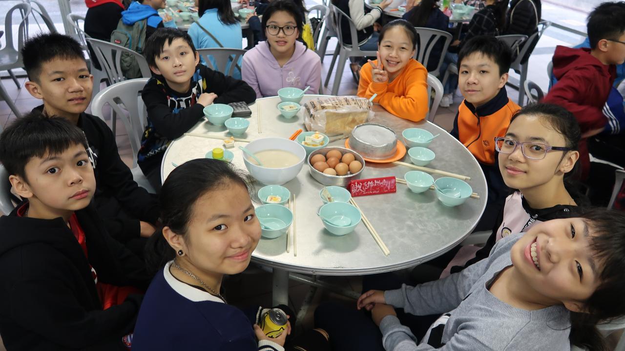 同學們準備吃早餐了。