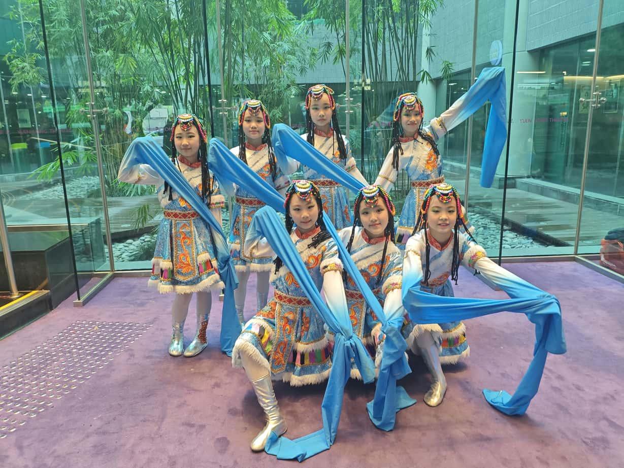 本年度共有十九位舞蹈隊員參與,舞蹈名稱為「小雨點踏踏踏」,描述一群藏族小女孩,穿著色彩斑斕的傳統服裝,開開心心地在公園內的水坑中跳來跳去,溅起水花,在細雨中快樂地玩耍。中國舞蹈隊同學們在比賽前每星期都加時練習,經過同學們的努力,家長們在比賽前的協助及支持,比賽時獲得現場評判的高度讚賞。本年度更獲得「優等獎」的殊榮,真是萬分歡喜!