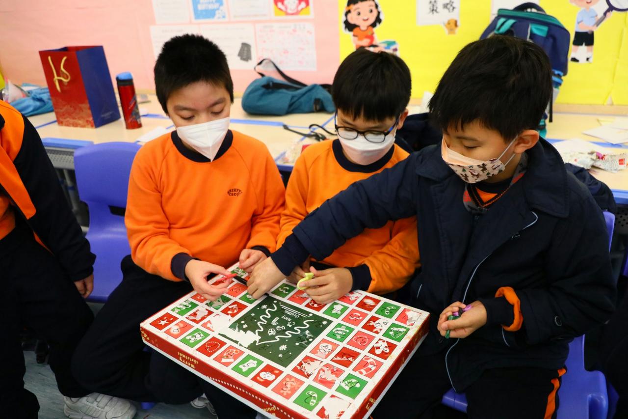 目的:為了加深學生與老師的感情和促進家校融洽,讓學生感受濃厚新年氣氛,活動組早於12月20日(二)於校內舉行一年一度的迎新年聯歡日。雖然是次活動鑑於疫情關係,大食會環節暫時取消,但有賴各班主任精心準備的遊戲環節和交換禮物,學生依然能在愉快氣氛下盡情享度過快樂的聯歡會,共度佳節歡樂。